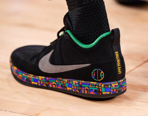 E qui Nike fa entrare in scena Spike Lee costruendo un immaginario street intorno alla silhouette, nasce la campagna “Urban Jungle Gym” con il regista e Tim Hardaway a fare da protagonisti. La partnership di Spike con il brand di Portland è stata fondamentale nella transizione di Nike da marchio di sneaker a marchio lifestyle. Lo spot è girato in un piccolo teatro da playground con Spike che fa il narratore e Hardaway il fenomeno che mette in mostra le sue skeels, “I got skeeels” pronunciato dal campione diventerà un vero e proprio tormentone del periodo. Una delle cose più forti della Air Raid nelle sue versioni più iconiche è la grafica: pattern geometrici multicolore, richiami che molti leggono come “afro” e un’energia da poster anni ’90. In diverse letture moderne della colorway “Urban Jungle”, quei pattern compaiono su intersuola, linguetta e tallone, insieme al simbolo della pace: elementi che vengono collegati direttamente al messaggio di unità della campagna di Spike Lee. Il contesto culturale è quello di un’America dove il playground è un luogo reale di incontro e scontro, un microcosmo di quartiere: al campetto si può essere duri e competitivi senza perdere il senso di comunità e Nike capì l’importanza del messaggio stampandolo sul tallone delle Raid II “Live Together, Play Together”, portandolo in TV e divulgandolo con Spike Lee, che in quegli anni era già una voce centrale della street culture e della cultura urbana.